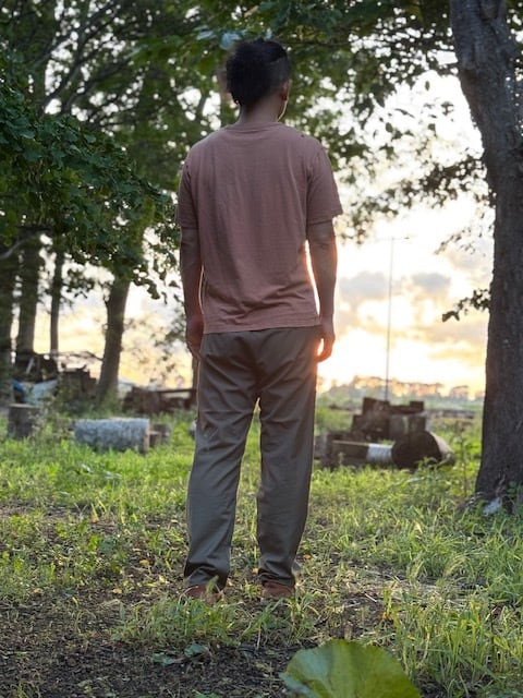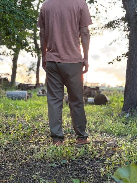 大きい動きの男性にも対応できるパンツスタイルを意識して作りました
